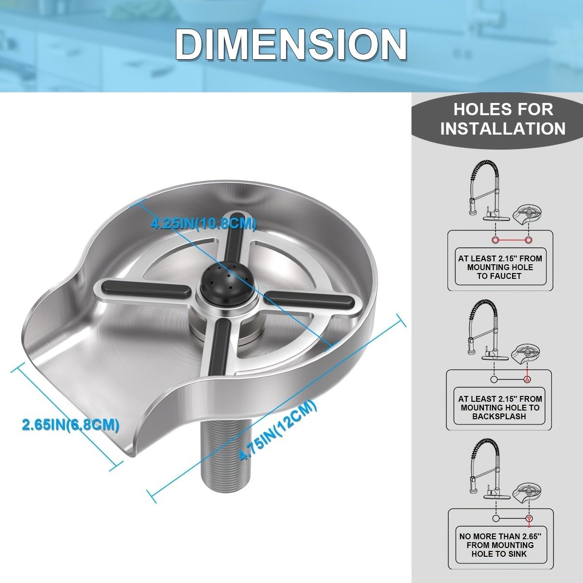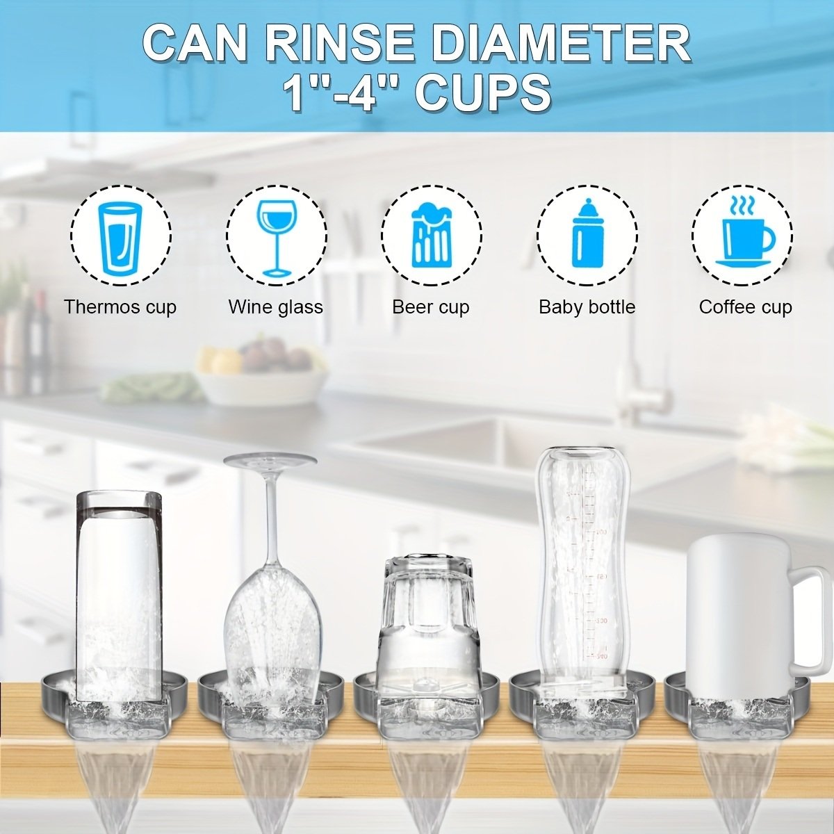 Simple DIY Replacement For A Sink Sprayer; Soap Dispenser Or Sink Hole Cover. Can Rinse Most Standard Cups; Including Wine Glasses; Baby Bottles; And Travel Cups.Minimum Cups Opening Size Is 1" In Diameter And Maximum Cups Opening Size Is 4".