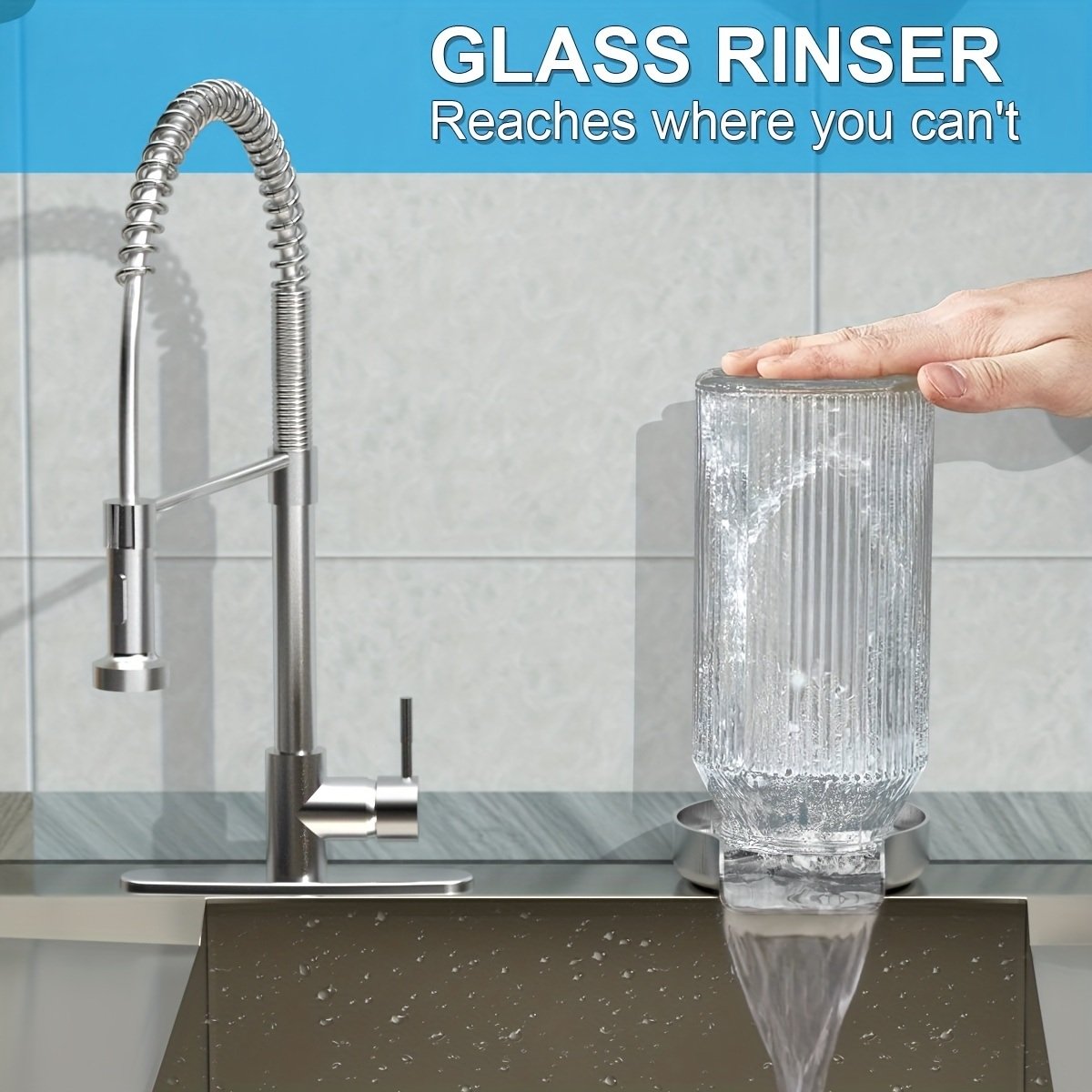1pc Kitchen Sink Glass Rinser; Faucet Glass Rinser For Kitchen Sinks; Bottle Washer; Kitchen Sink Accessories; Stainless Steel 304; Brush Nickel