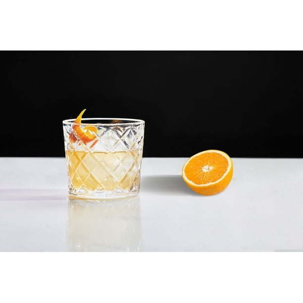 Whether it’s a spirit poured neat or on the rocks, the Better Homes & Gardens Diamond Cut Old Fashioned Glass is a sophisticated glass for serving a beverage. The diamond-cut pattern in the premium clear glass holds up to 8 ounces of a beverage, and it offers a stylish flair to a classic household glass. With four in the pack, you’ll have a glass for each of your guests. Pour the drink in the Better Homes & Gardens Diamond Cut Tumbler Drinking Glass, then garnish it with a citrus peel or a cherry before serving.