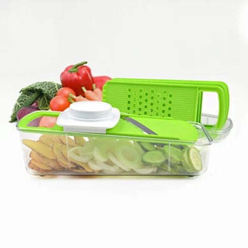 DETAILS:The 4 in 1 multipurpose fruit and vegetable tool is made of BPA FREE Food Grade Plastic for Quality Kitchens.It includes 4 inserts to manually Shred; Cut; Slice and Grind fruits and vegetables.It also includes one fruit or vegetable holder.The Acrylic container comes with a lead that has slots to hold all the 4 inserts and the holder; while the container can be used to catch the fruits or vegetables. put one of the insert of your choice on top of the container and with the help of the holder you can shred; cut; slice or grind your choice of fruit or vegetable.Dishwasher safe. Compact enough to neatly store in a kitchen drawer.Suitable for every modern home; great for gift giving as well.It comes in Organic Green color.